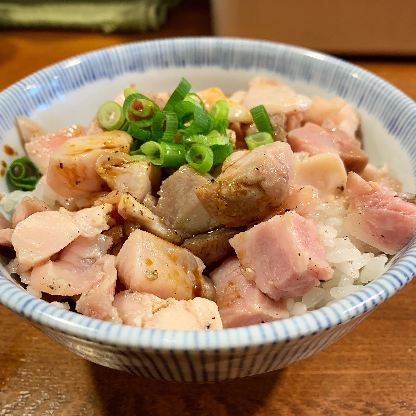 チャーシュー丼は鶏と豚のMIXで味付けは控えめ。