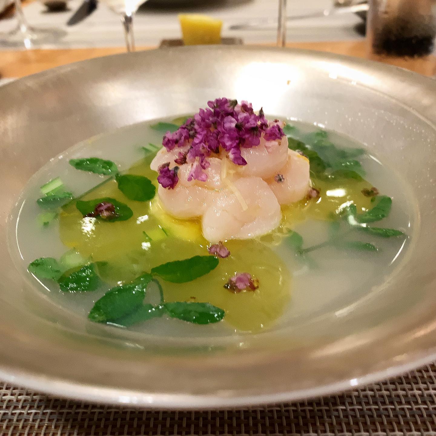 ◆ベビー帆立(噴火湾)、カブ(青森)、クレソン、大麦 蟹の出汁の優しいお椀。帆立の質がさすがでした。