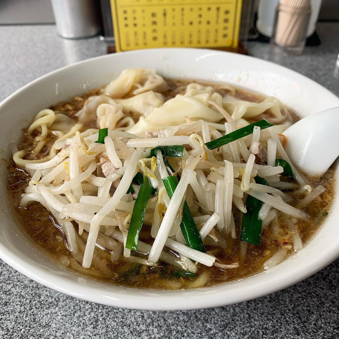 食べログにて2017年から3年連続ラーメン百名店選出の喜楽で、人気のもやしワンタン麺を注文。