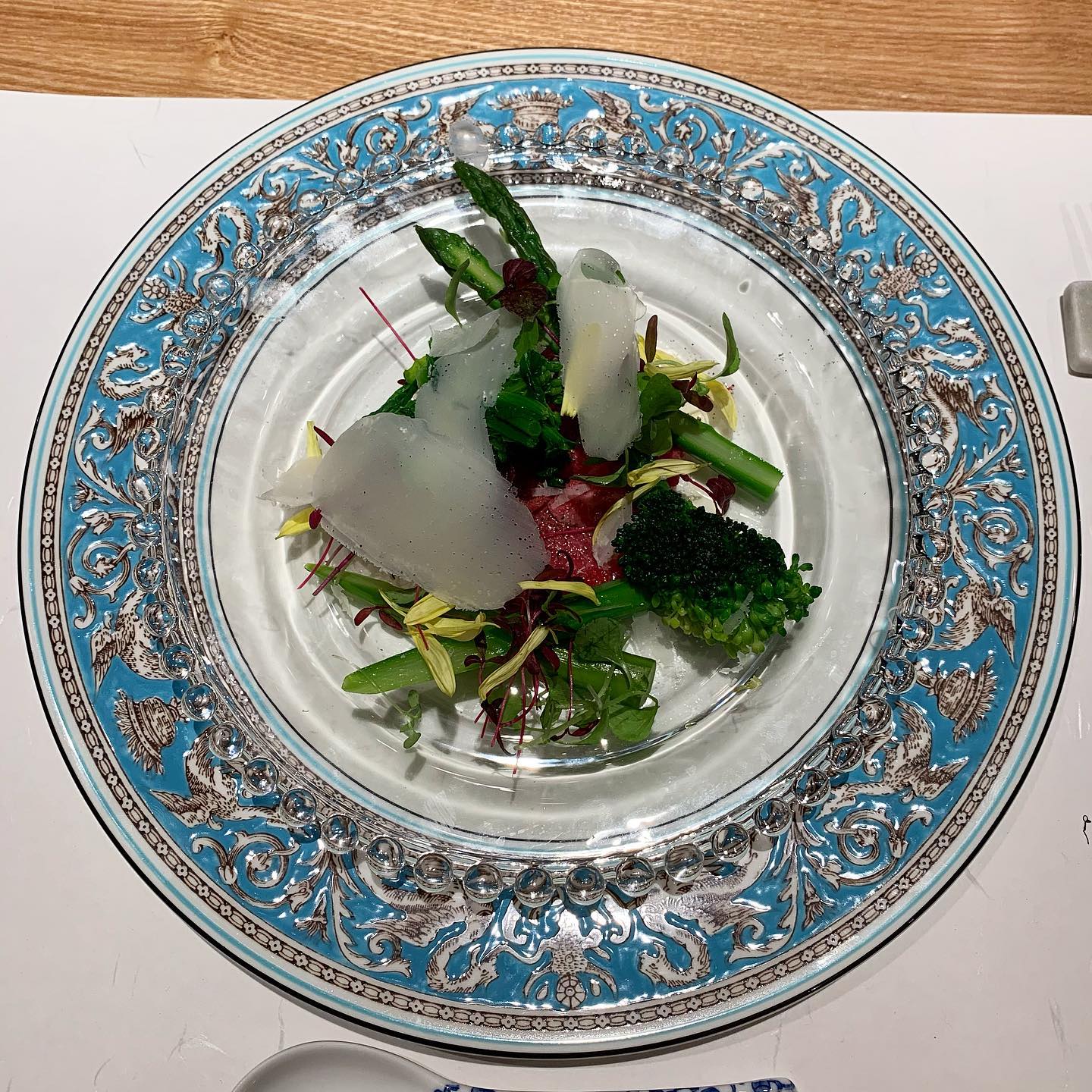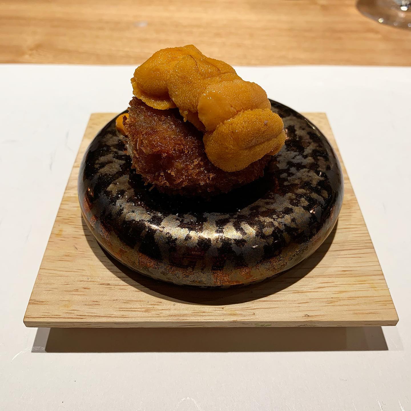 ◎肉割烹 岡田前(麻布十番)◎ *麻布十番駅から徒歩5分 *肉好きには堪らない絶品お肉料理のオンパレード *食べログ3.06 *おまかせコース:18,000円 ペアリング(途中ストップ):8,000円 肉のコースは普段あんまり行かないが、いざ岡田前へ。 21年2月にオープンしたが、グルメの人達や The Innocent Carvery時代からのファンで満席。 岡田さんが軽快に捌くこだわり抜いたお肉を これでもかというほど堪能できるコース。 ソムリエもいるのでお酒好きはペアリングがオススメ。 ①神戸牛ヒレ刺しのカルパッチョ 春野菜とヒレ刺しの組み合わせ。紫蘇と山椒の香りが良い。 お肉は目立たないが美味しかった。 ②コンソメフランいくらのせ 松茸出汁をしっかり感じるコンソメフラン。 いくらとの相性も良い。 合わせるのはスペインのロゼ。 ③メンチカツ雲丹のせ 肉肉しいメンチカツに濃厚雲丹がめちゃくちゃ合う。 雲丹は根室の馬糞雲丹。 肉割烹でここまで美味しい雲丹が食べれるとは。 合わせるのはニュージーのソーヴィニヨン。 ④牛タン刺し黒トリュフのせ 朝捌いた熊本の牛タンのタン中を刺しで。 贅沢にフランス産黒トリュフといただきました。 とにかく食感が抜群。新鮮さに驚いた。 合わせるのはカリフォルニアのシャルドネ。 ⑤牛ヒレのスープ アワビ、フカヒレ、京都の筍も入ったスープに 花山椒を添えた香りも風味も食感も楽しめる1品。 ⑥松阪牛ミンチのTKGキャビアのせ 松阪牛のイチボを生のままミンチにしてTKGと キャビアと合わせていただく。 最初から混ぜて食べたが、まずは混ぜずに食べれば良かった。 合わせるのはフランスロワールのロゼスパークリング。 ⑦タンステーキ(熊本) ここからがメイン。捌きたてのタン元のステーキ。 とにかく食感が秀逸。さっぱり塩と酢橘でいただきました。 合わせるのはニュージーのピノ・ノワール。 この辺で酔ってきたのでワインはストップ。 ⑧内腿のステーキ(松坂牛) きめ細かいお肉でしつこさがない。 ジューシーさがガーリックや山葵と良い相性。 ⑨サーロインのステーキ(神戸牛) しっかり脂の乗ったサーロインはフレンチマスタードと カンボジアの生胡椒でいただきました。 美味しかったが少しこの辺からキツくなってしまった。 ⑩シャトーブリアンのカツレツ(神戸牛) メインラストはカツレツ。 薄衣でステーキがきつくなってきた時の良い変化だった。 ⑪蕎麦 さっぱり蕎麦で〆。お腹がキツくてもペロリと完食。 ⑫トリュフのアイスとイチゴのケーキ トリュフのアイスの香りがめちゃくちゃ良かった。 トリュフとバニラアイスの相性がこんなに良いとは。 どの料理もとても美味しかったが、最後の方は 少しきつくなってしまった。 改めて肉より魚の方が満足度は高いと思った。 もちろん肉好きには堪らない内容だと思うので肉好きは是非。 ★★★★★★★☆☆☆