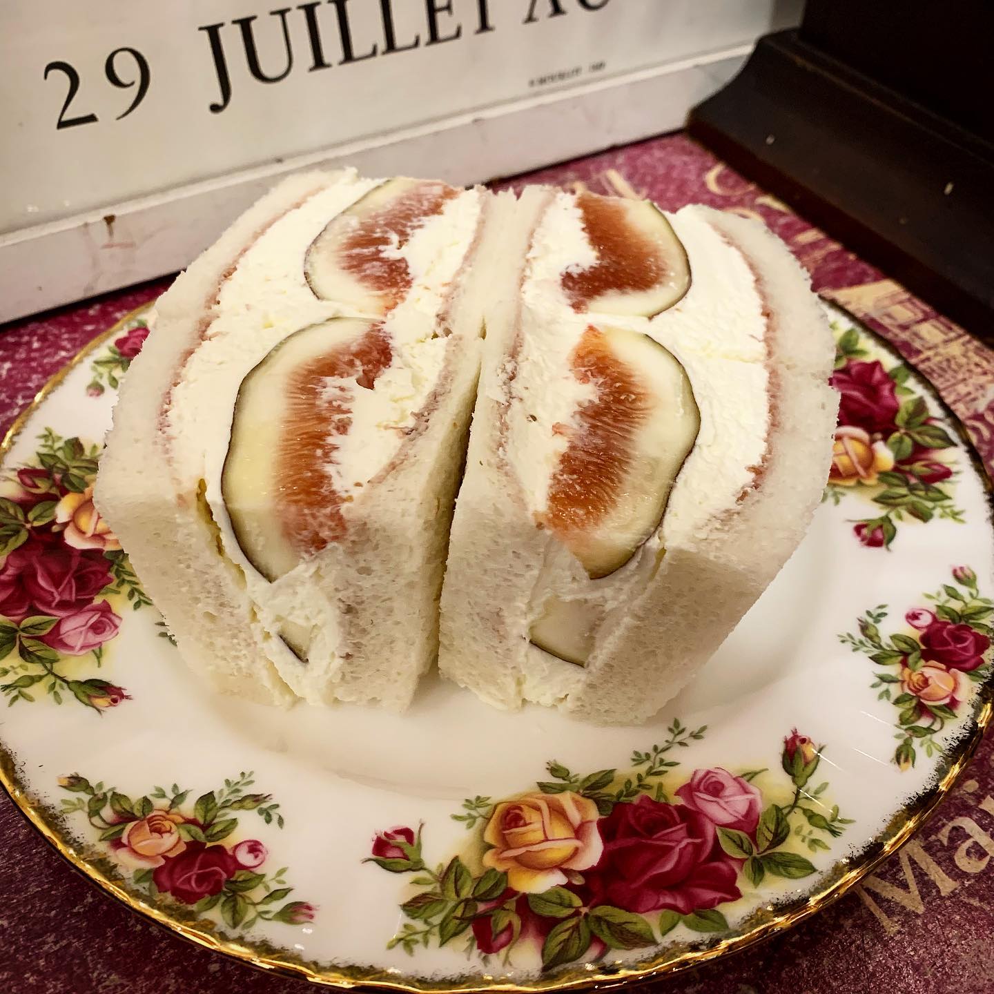 お皿いっぱいに盛られたフルーツサンドに涎が…