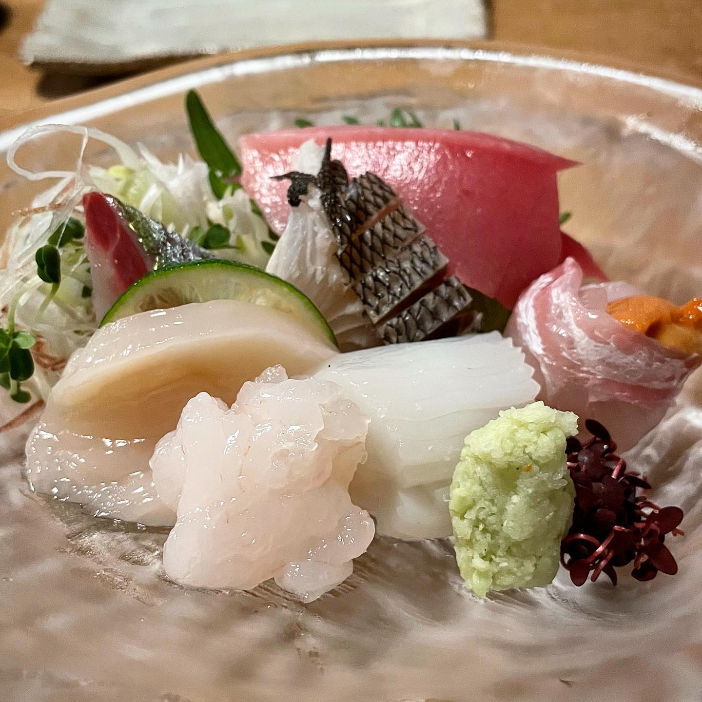迷った末にとりあえず刺身盛り合わせと珍味三種を