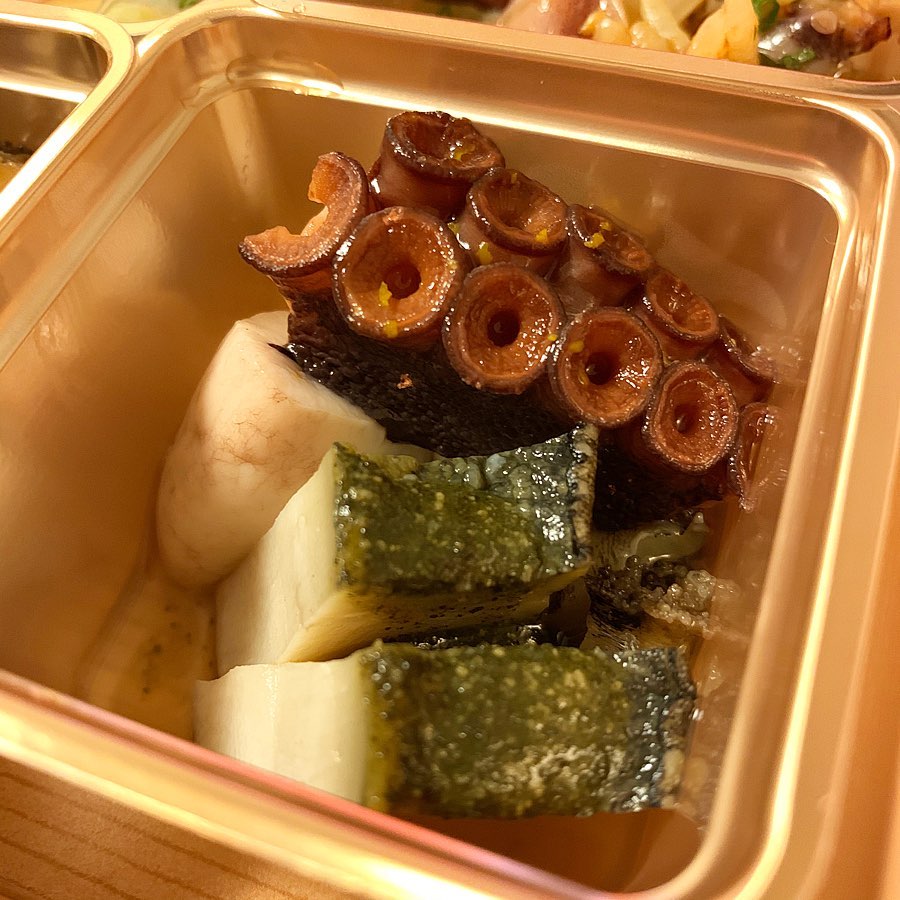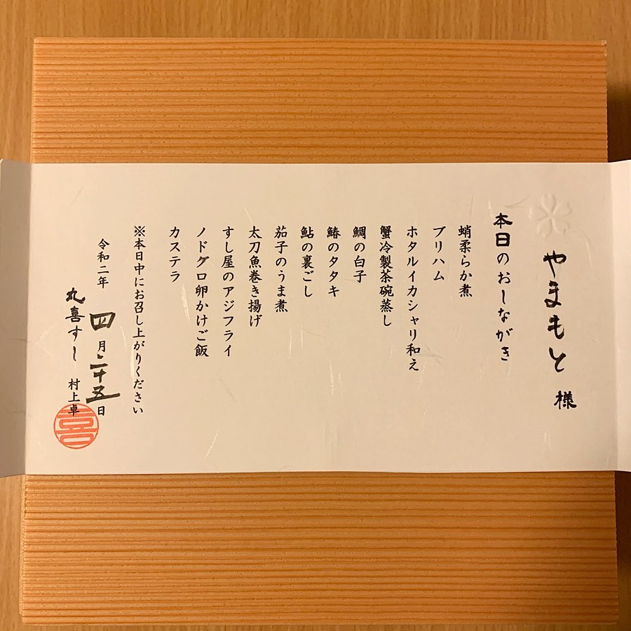 丸喜すしさんでテイクアウト。特に楽しみだった寿司屋のつまみ盛りは期待通りの美味しさ。全てのクオリティが高く大満足でした。菊鮨で食べて感動したホタルイカのシャリ和えは刻んだ旬の筍も一緒に。名残りの鰆も旨味十分。鮎の裏ごしは初めて食べたが、日本酒が無限にいける。タコと鮑は丁寧に柔らかく仕上げており、繊細な味で、寿司屋さんのおつまみという感じ。他にも揚げ物や茶碗蒸しなどがあり、どれもこだわり抜いた逸品。