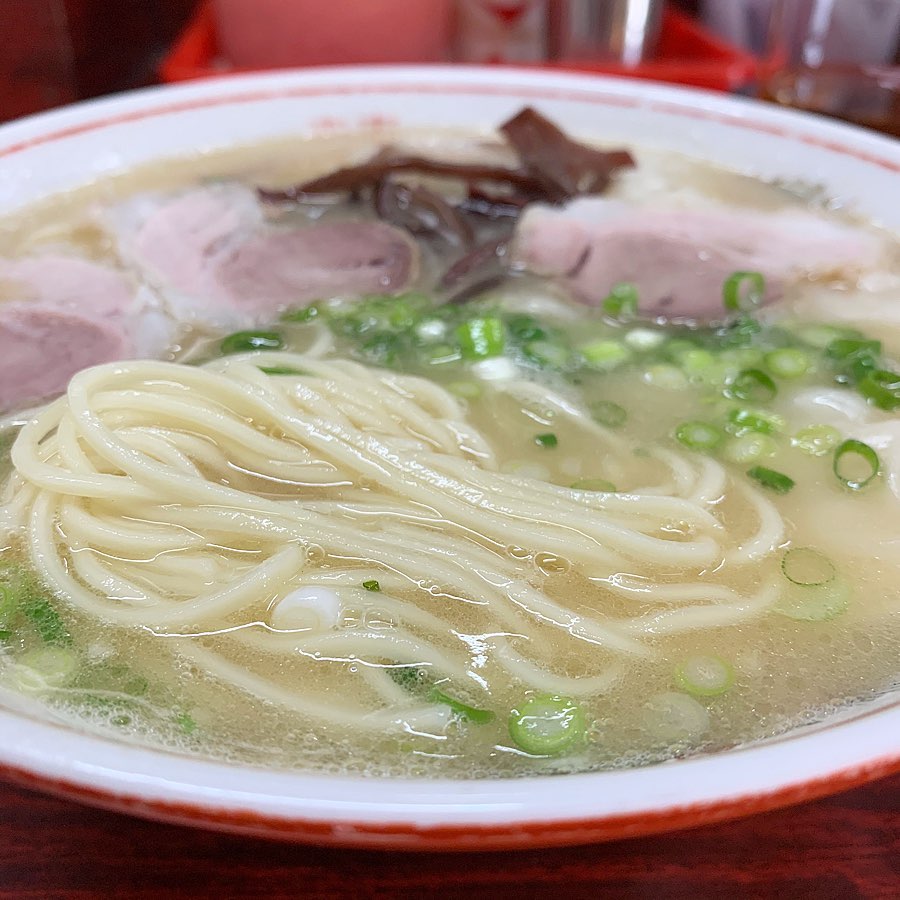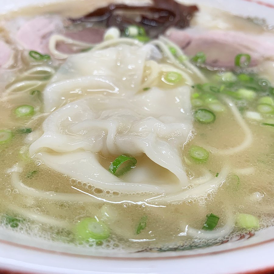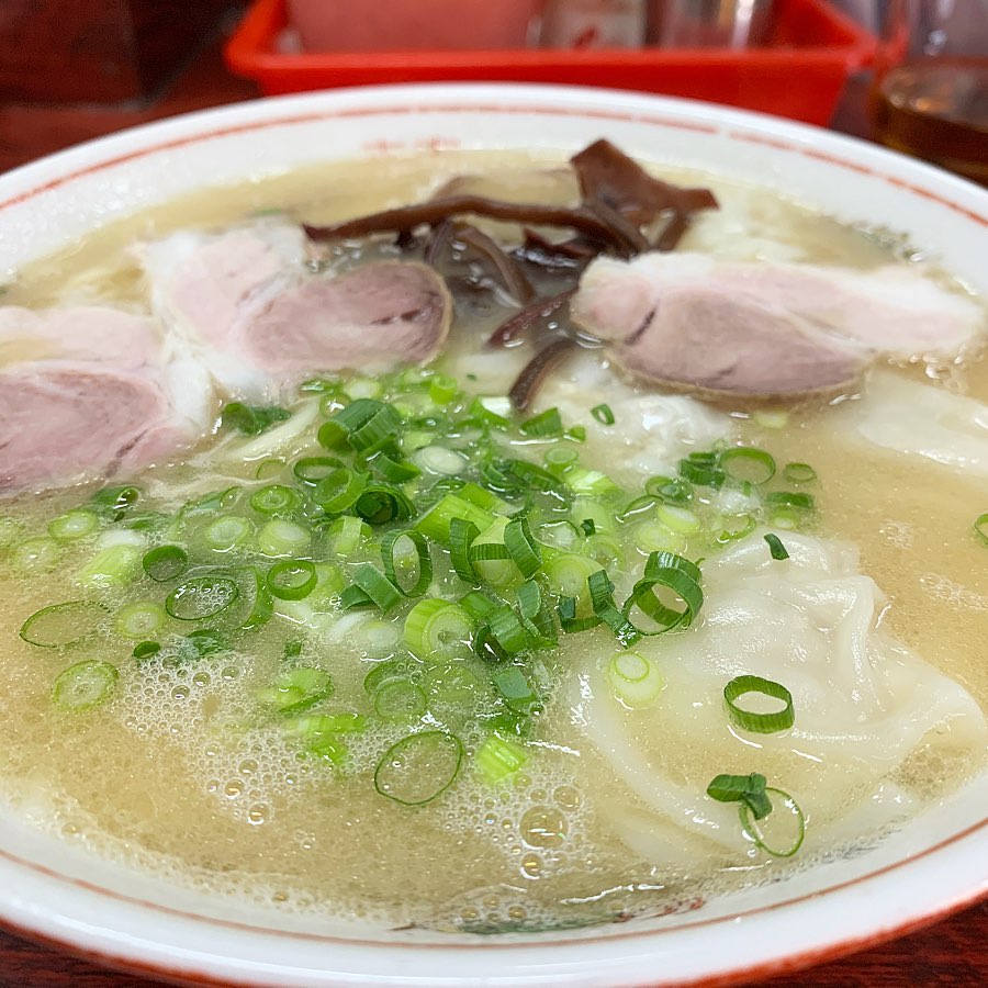 久留米ラーメンを提供する宝龍へ。店内はしっかり豚骨臭が漂う。ワンタンがトゥルトゥルということでワンタンメンを注文。スープは油膜が張ったこってり豚骨。味はしっかりしているがタレの主張は弱めで甘みも弱め。なかなか好み。麺は加水率高めの中麺ストレートで少しやわめでいただく。昔ながらド豚骨ラーメンを美味しくいただきました。