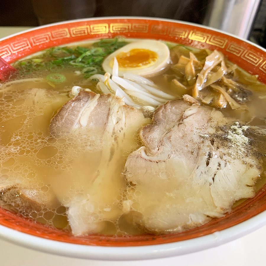 老舗ラーメン店へ久しぶりの訪問。太平山ラーメンの普通サイズを注文。スープは醤油豚骨だが、こってり感はなくデフォルトで入っているコショウがスープをしっかり仕上げている。麺は加水率高めのにゅるにゅる麺。少しやわめのこの麺が何故か癖になる。この麺とホロホロほぐれるチャーシューの相性もGood!