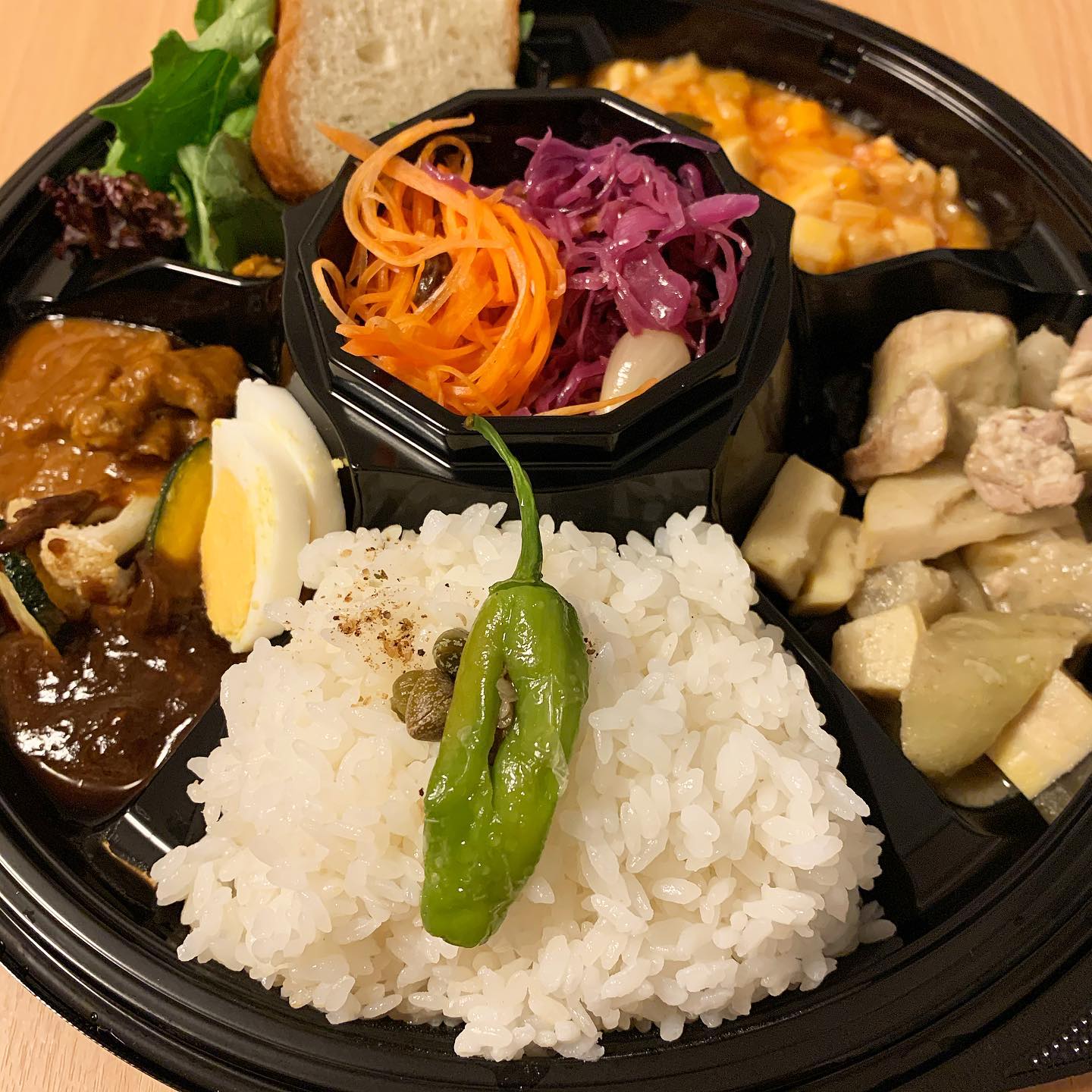 フレンチの名店でこだわりのカレーをテイクアウト。前菜からメインまで一皿で楽しめる。和牛を贅沢に使ったカレーはクルーズトレインのななつ星で提供されていたカレー。他にも仔羊のスパイスカレーやイベリコ豚と筍のグリーンカレー等どれも複雑な味わいでめちゃくちゃ美味しい。食感や風味を残した大きめな具材に、しっかりスパイスを効かせた本格的なルーを合わせている。米との相性はもちろん、そのままでもとても美味しい。大好きな筍のブルゴーニュ風と唐津のフルーツトマトも一緒にいただきました。こんなに甘いトマト食べたことない。