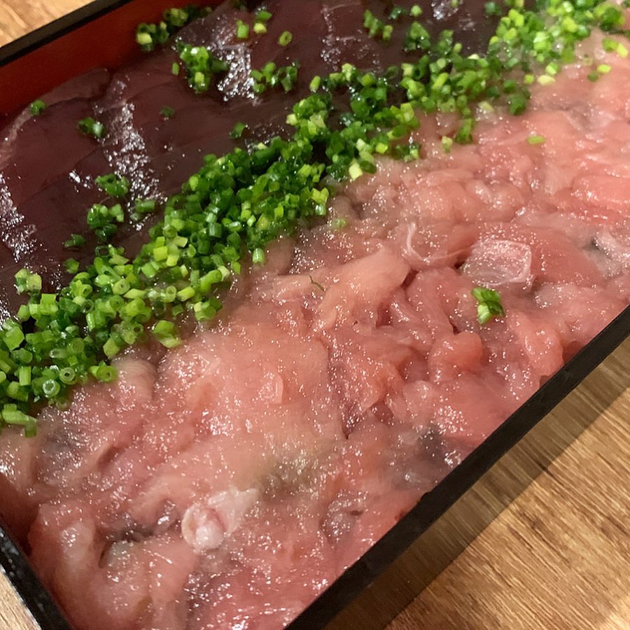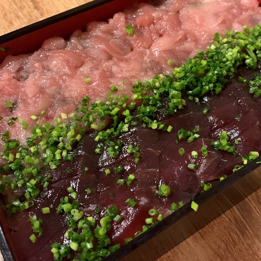 あさ海さん3回目のテイクアウトはまぐろの2色丼。濃厚な鮪は隠れている海苔との相性抜群。ネギトロには後乗せで刻んだ白ネギを。今回も美味しくいただきました。いつもありがとうございます。