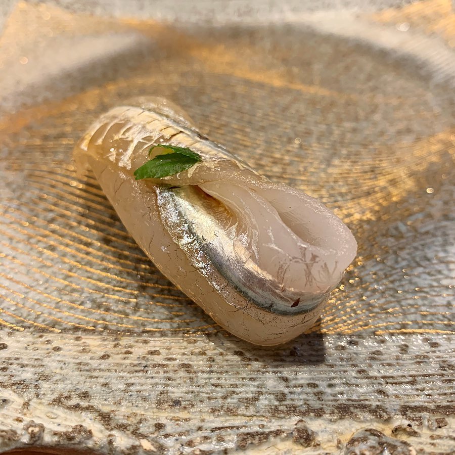 大阪のイワシ。少し酢で〆てさっぱりいただく。青魚の旨味が余韻として残る。