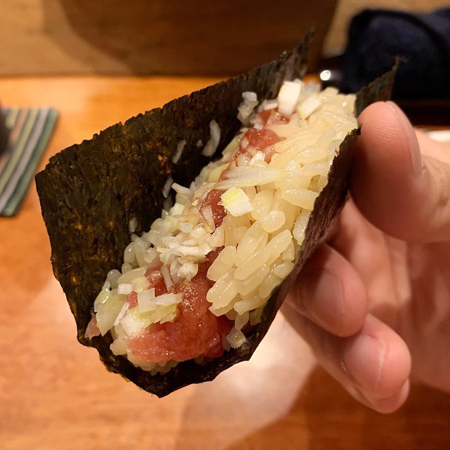 あさ海さん定番のめちゃウマな一品。シャリ、中落ち、ネギ、わさび、海苔、全てのバランスが完璧。