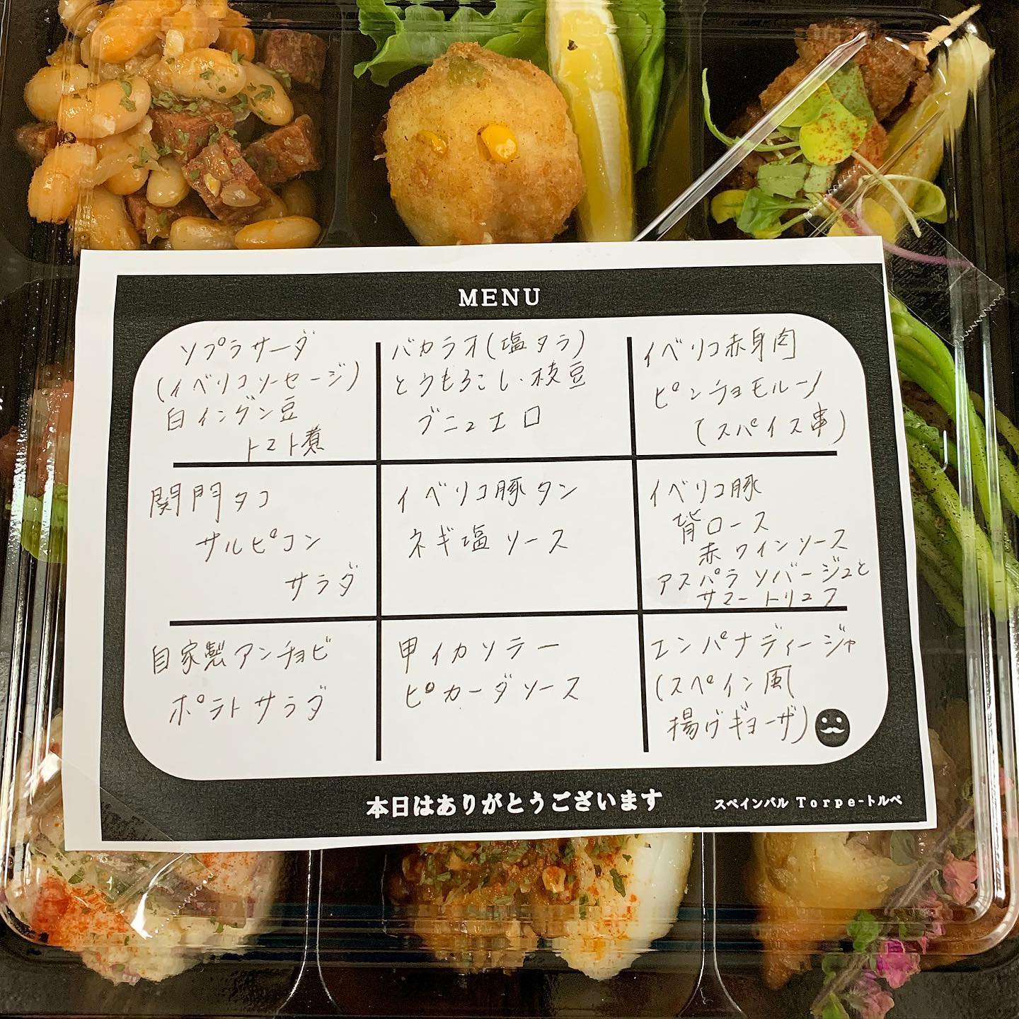 小倉のスペインバルトルペでタパス9種盛りをテイクアウト。イベリコ豚を使ったメニューが多く、味もしっかり付いているのでお酒のつまみにピッタリ。甲イカやサラダ等のサッパリ仕上げたものから、スペイン風揚げ餃子やイベリコのスパイス串等のガッツリしたものまでバラエティー豊か。飽きずに美味しく完食できました。お酒もついつい飲みすぎた。