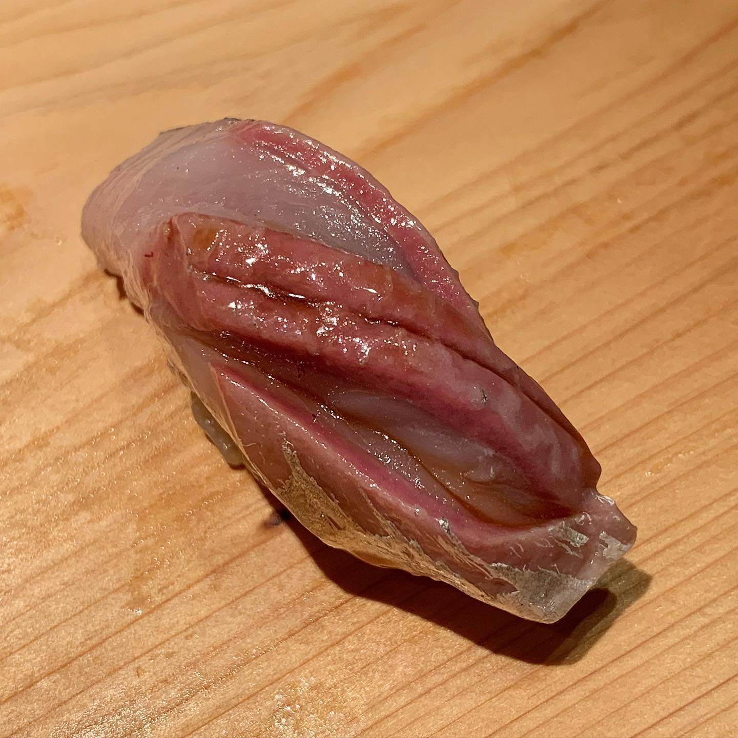 宮城県塩釜の定置網198キロを3貫。15日寝かせたトロは口に含むと旨味が爆発。シャリとのバランスも良く、余韻も素敵。