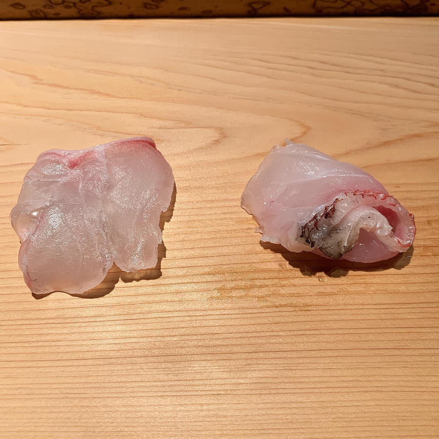 上対馬の甘鯛は炙りで。白身特有の粘りが強くて美味しかった。刺身は恐らく石鯛。甘鯛より淡白で弾力があった。
