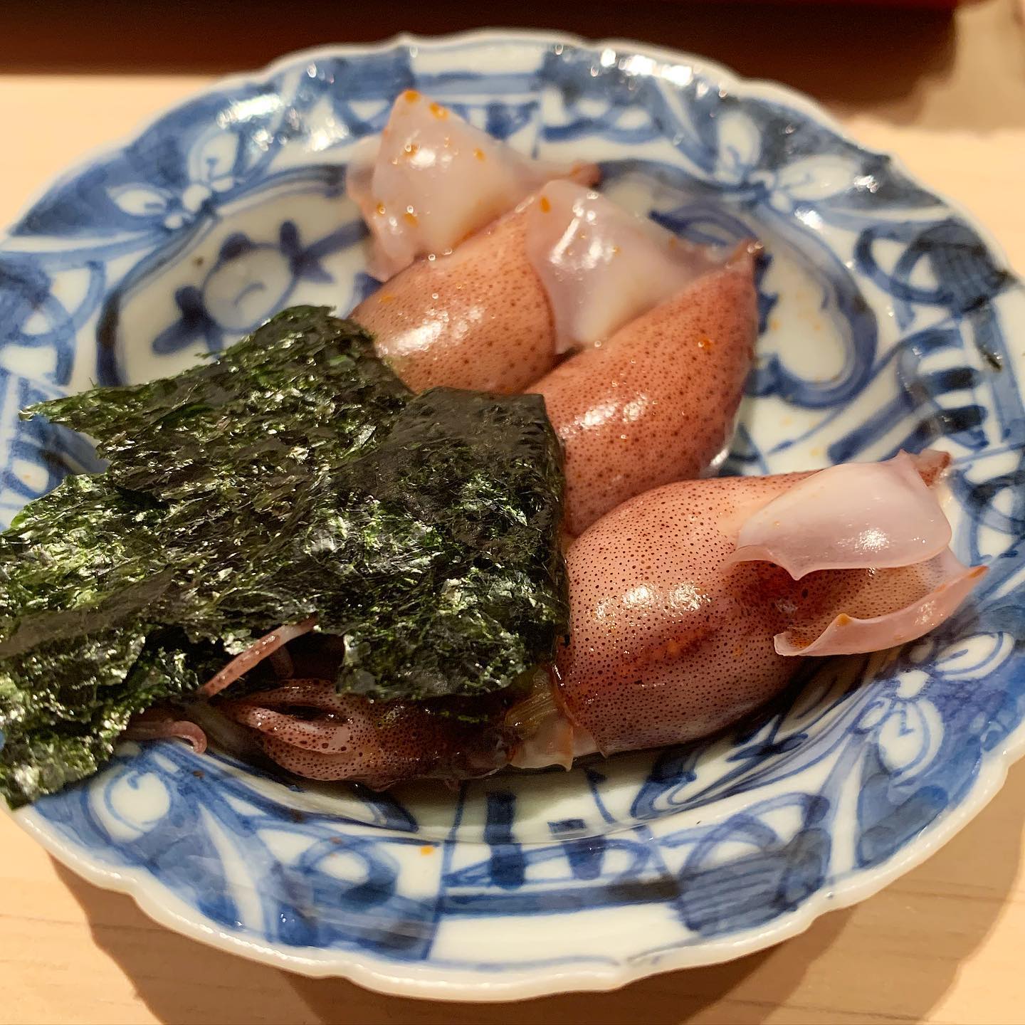 ぷりっぷりのホタルイカはボイルして出汁をかけて海苔を散らしていただきました。