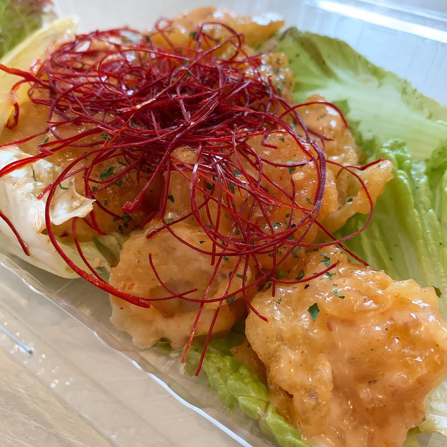 プリプリの海老を揚げて、チリソースとマヨネーズで和えた逸品。サクッと軽い食感の衣に、濃厚だがバクバクいける味付けが秀逸。