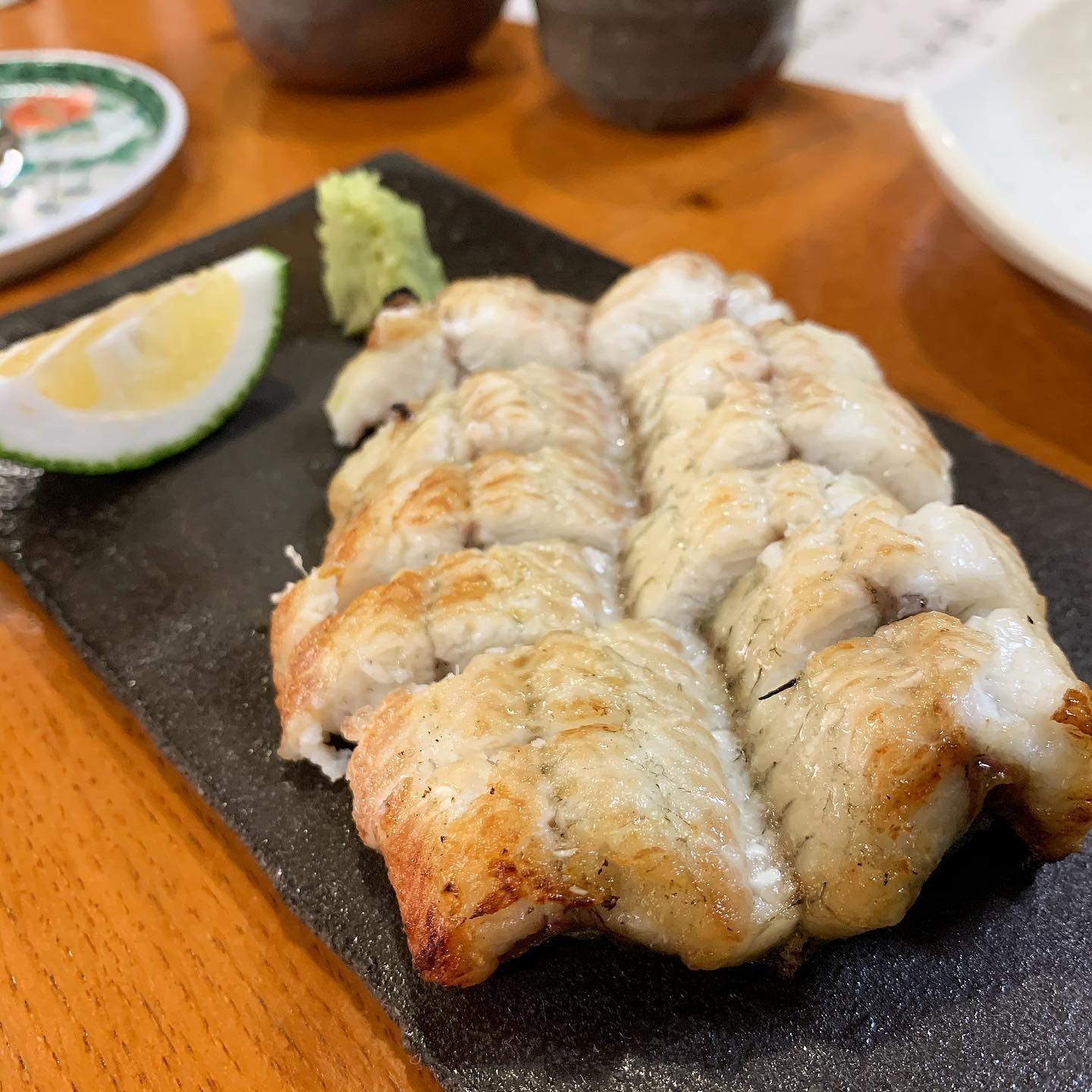 今回1番感動した逸品。松田さんが捌いた鹿児島の鰻。生のまま焼いているので弾力抜群で噛めば噛むほど脂と身の旨味が口に拡がる。皮すらも弾力があり、身と一体化している完成した白焼き。