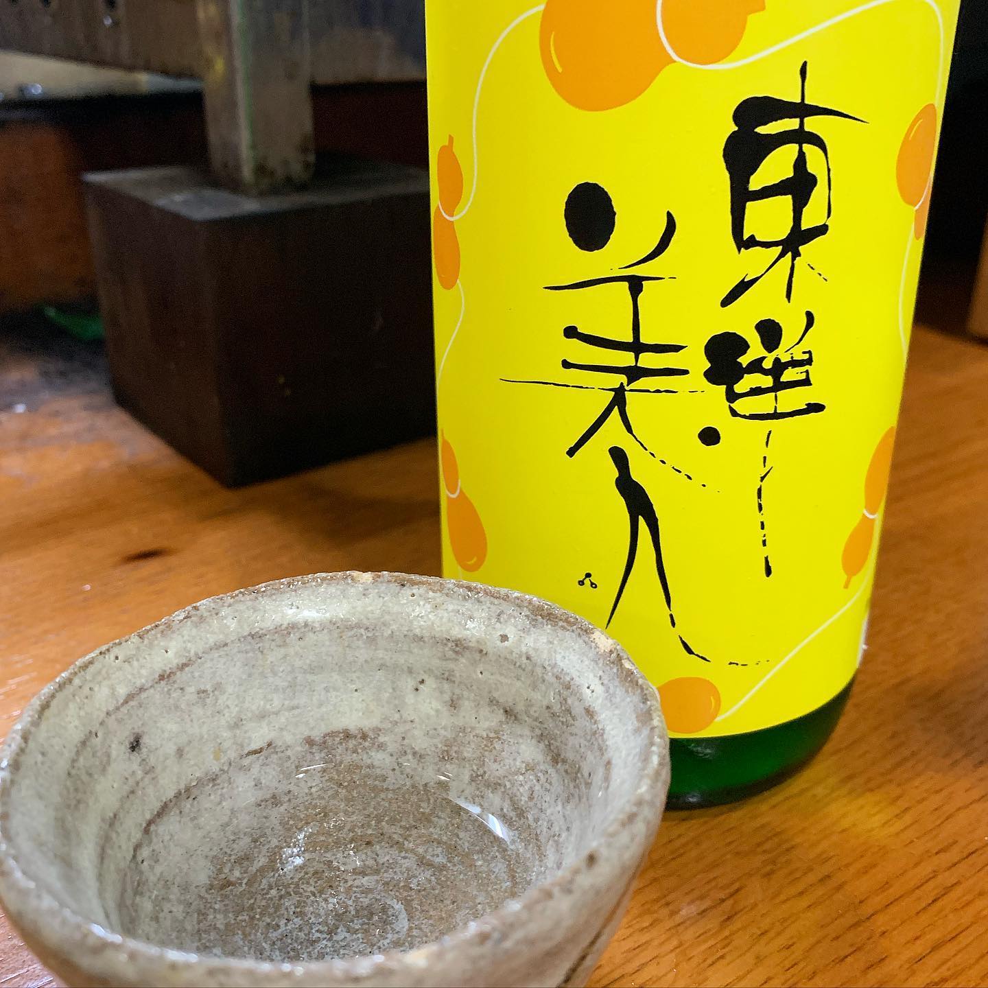 新型コロナウイルスの終息と酒業界に活気を取り戻したいという願いが込められたお酒。少し癖を感じたが、陶器のお猪口に移し替えただけで味が変わって驚き。時間を置いた方が香りが落ち着いて好み。