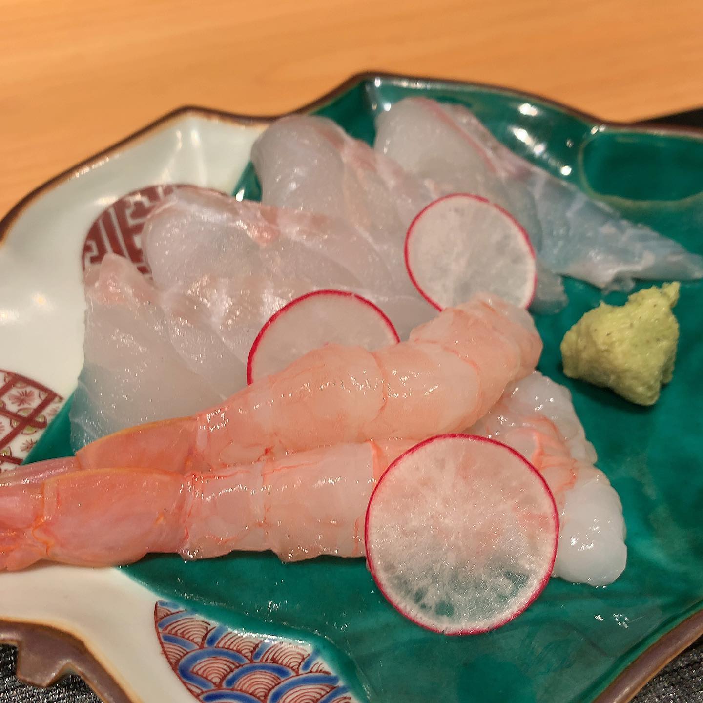 これまた高級魚のキジハタと薩摩甘エビ。薩摩甘エビはめちゃくちゃ美味くていい意味で裏切られた。濃厚な粘りと甘味が口に拡がって最高。キジハタは弾力があり、飲めるくらい薄い醤油との相性も抜群。