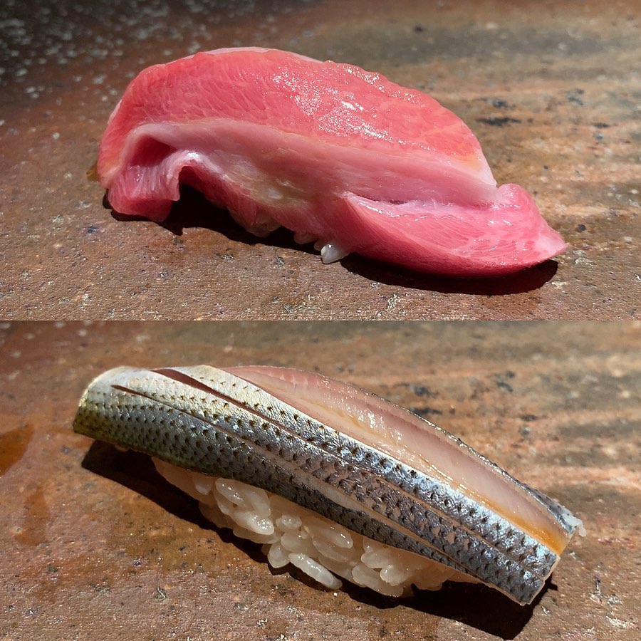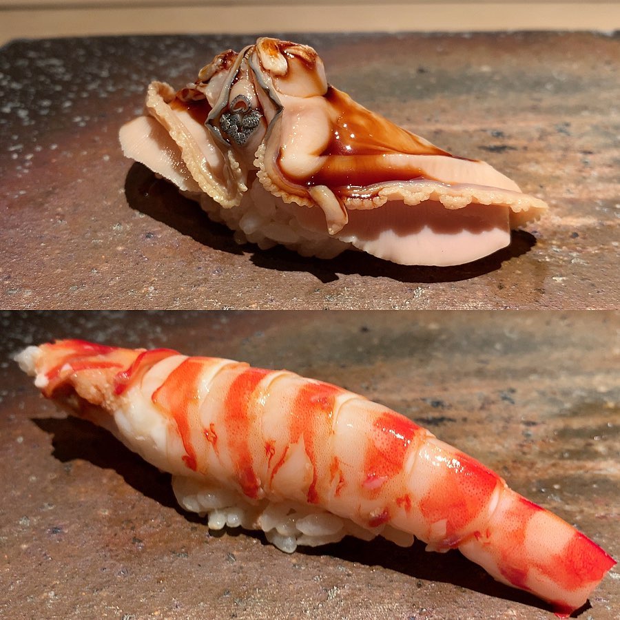 念願の菊鮨さんへ。ミシュラン一つ星でThe Tabelog Award 2020 Silver 受賞の超有名店。お鮨は小ぶりで、赤酢のシャリはしっかり存在感があるが、円やかでどのネタにも合う。口の中でシャリとネタが馴染む感じはさすが一流。シャリとの相性を意識したネタの工夫が印象的でした。