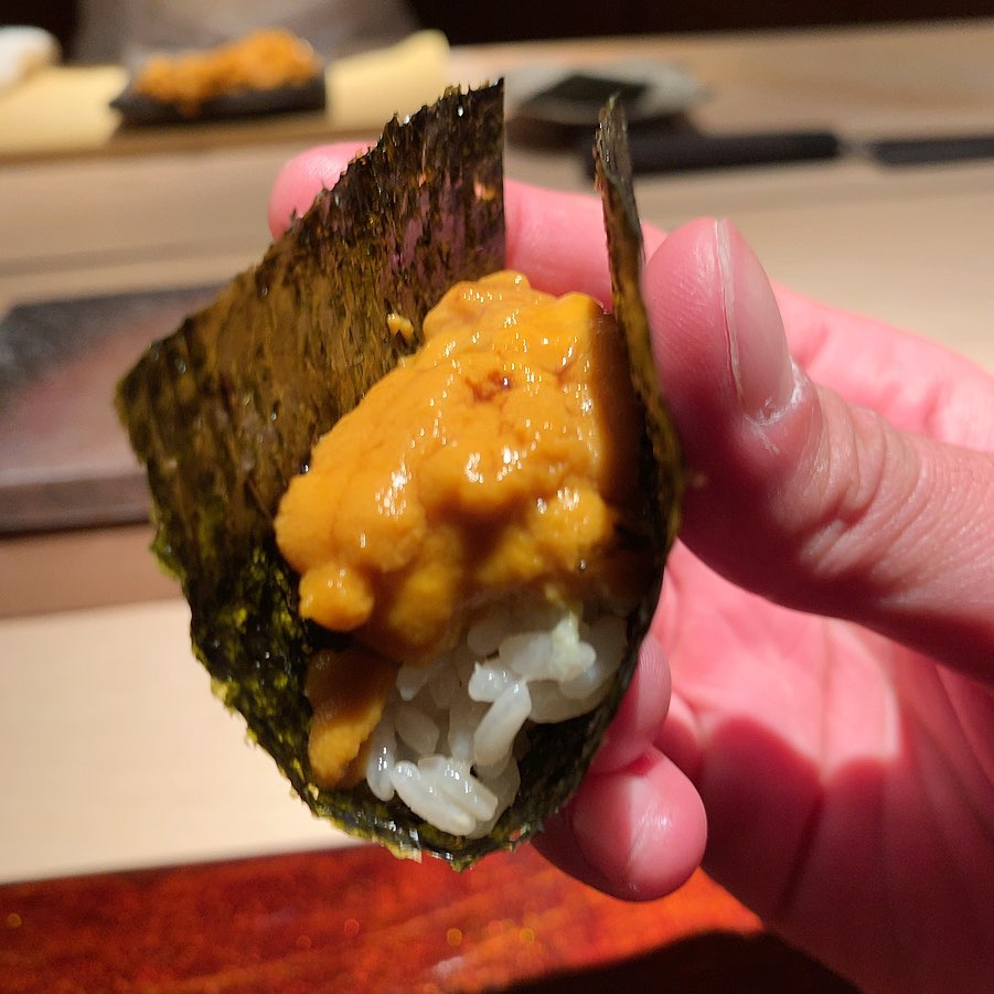 長崎のムラサキウニ。粒感はないが王道の味わいと濃厚さ。
