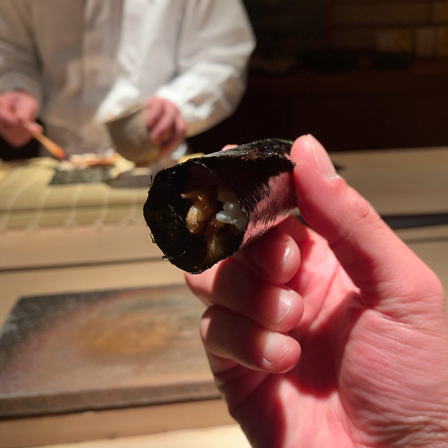 対馬の穴子を巻物で。フワトロ感を感じられる握りでいただきたかった。