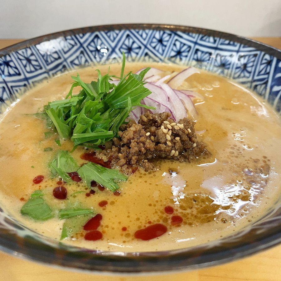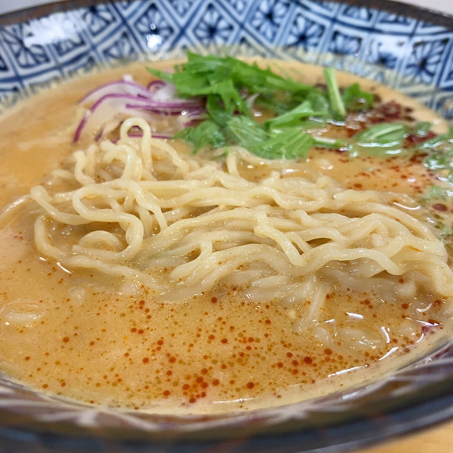 久しぶりに訪問。ごますり上手の坦々麺をお得なランチセットで注文。セットのサラダはフレッシュな野菜とフルーツをふんだんに使用。前菜は6品もあり、お酒が飲みたくなる。坦々麺は白ごまの風味が口に拡がり、クリーミーだがサラリとしていて、挽肉を使っているが洋を感じるスープ。坦々麺の麺としてはかなり特徴的なちぢれ麺。舌触りがつるつるで、透明感と弾力がある細麺。サラッとしたスープだからこそ合わせることができる麺な気がした。コスパも良く、満足度が高いランチです。