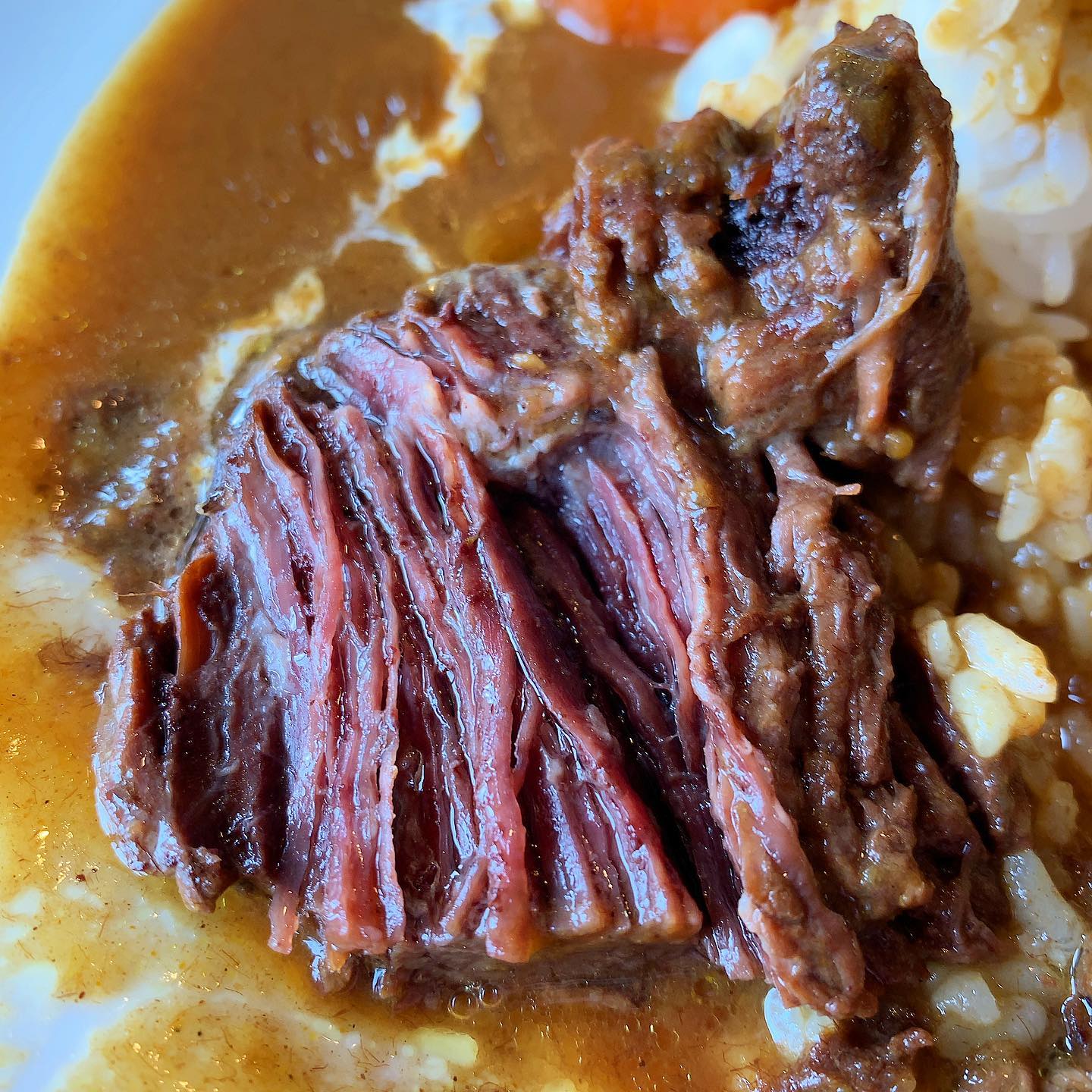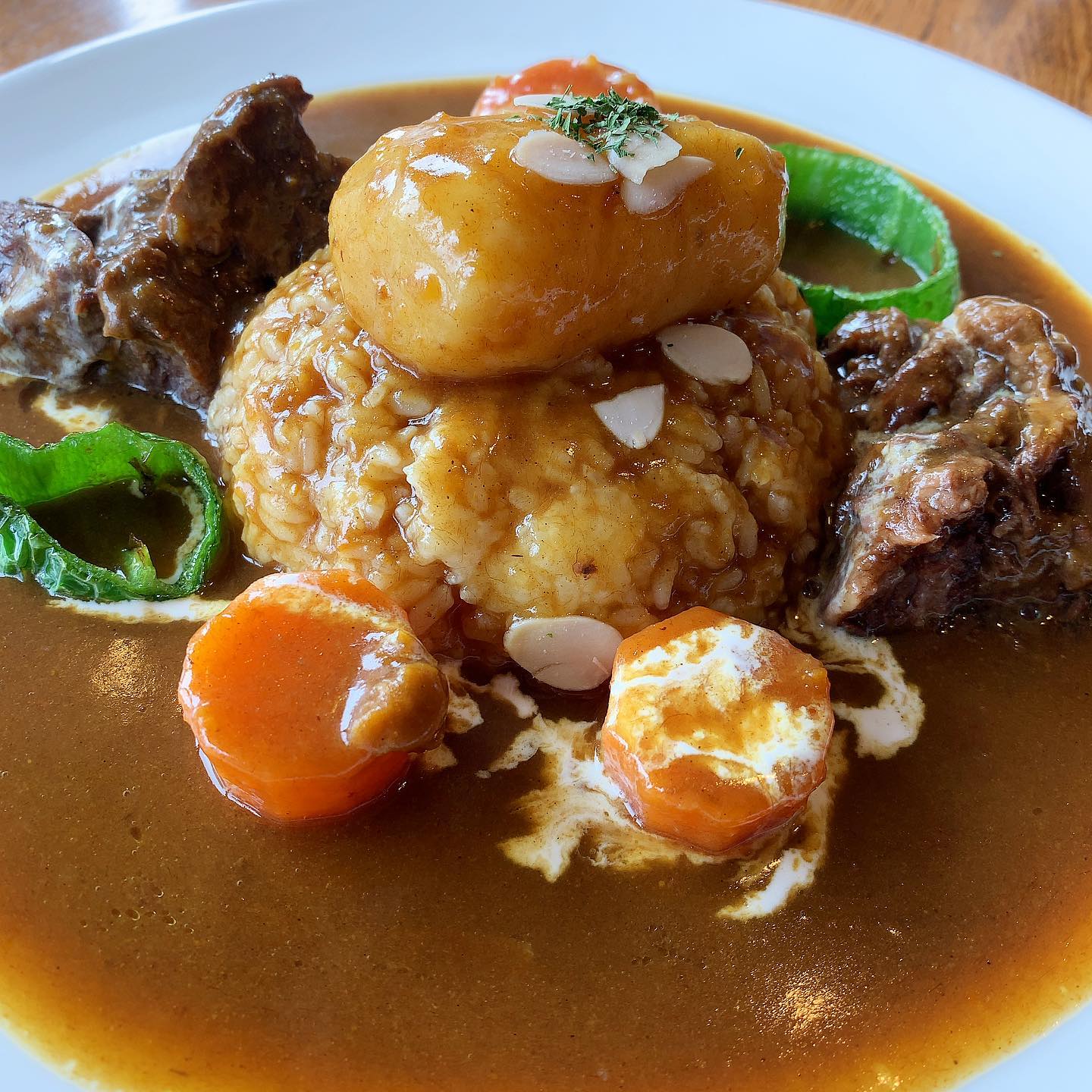 小倉の人気カレー屋さんで、数量限定のいーとんスペシャルビーフカレーを注文。しっかり煮込んだホロホロビーフとゴロゴロ野菜のカレーで、少し甘めに煮たにんじんが特に美味しかった。カレーはどちらかというとサラサラ系で欧風なので辛さは控えめで、マイルドな味わい。和風だしが効いている気がした。サラダのドレッシングが美味しいらしいので、今度はサラダも食べたい。