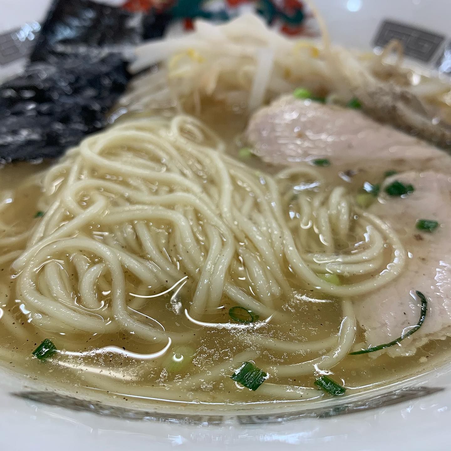 チャリでのラーメン巡り1麺目は若松から渡船で戸畑に渡り共栄軒へ。店内はしっかり豚骨臭。スープは油多め、塩味強めで見た目に反してなかなかパンチある。上澄みは油でテカテカしていた。麺はやわめの中細で好み。チャリ漕いだ後にちょうど良い塩加減だが、なかなか塩っぱい。