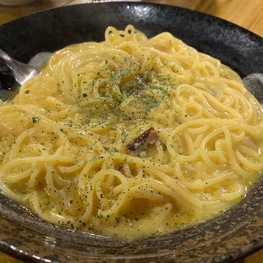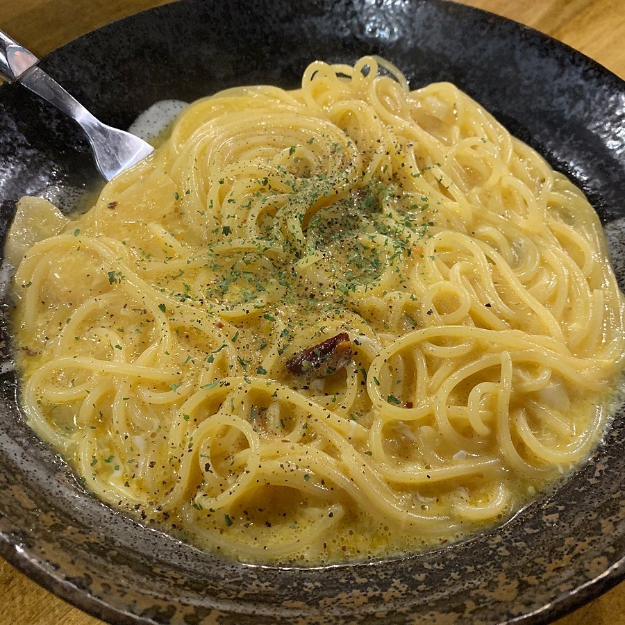 六倉会新年会からの二次会からの三次会は〆で村上商店へ。焼きラーメンと長浜ラーメンとぺぺたまをみんなでシェア。濃い目の味付けだが、シンプルなので飲んだ後は不思議とバクバクいけました。味は酔っててあんまり覚えていない…ぺぺたまはニンニクスライスも入っていてなかなかのニンニク感。