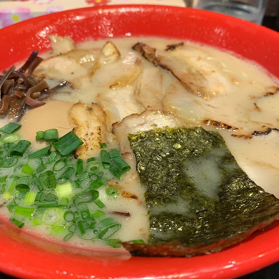 屋台ラーメンを注文。着丼すると山盛りチャーシューと玉子が…ありがとうございます!新しい有田焼のどんぶりが良い感じ!麺は濃厚ラーメンと違って?中細ストレート。程よい歯切れ感で好み!スープも軽めだがしっかりとんこつの旨味を感じられる。濃厚より屋台派かも。