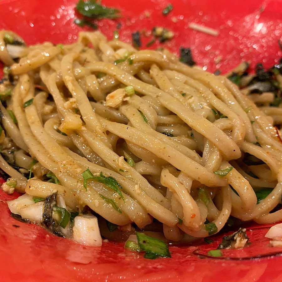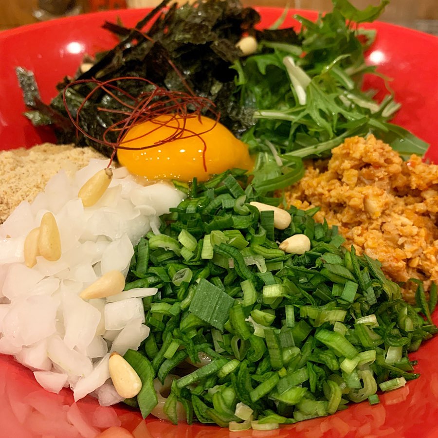 久しぶりの訪問。1番人気の鶏まぜそばを注文。具だくさんだがまったくしつこくない。自家製の太麺は春よ恋とゆめちからのブレンドで程よい弾力と小麦の風味がとても美味しい。嬉しいことに追い飯といつもの人参は無料。今回は軽く日本酒を1杯とカプレーゼも注文しました。日本酒は久留米の若竹屋 渓 袋こぼし 純米吟醸。おりがらみで終盤だったので酸は抜けていたが、もろみを残した無濾過生原酒なので濃厚な味わい。
