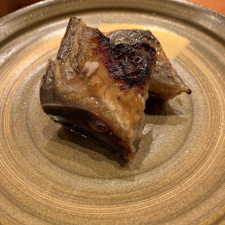 お寿司でも出たヨコワの焼き物。骨周りの身は焼くと身が締まって絶品だった。
