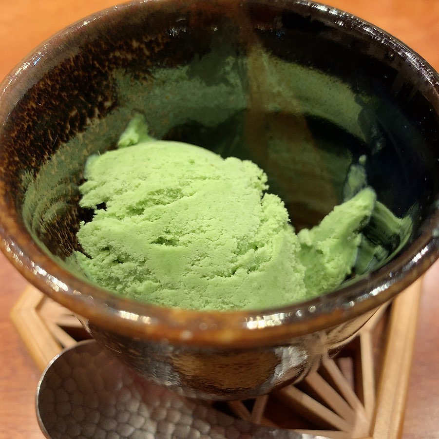 〆のデザートは手作りアイス。今日はお気に入りのヨモギのアイス。上質なヨモギの香りが口に拡がる。今回も最初から最後まで大満足。いつもありがとうございます。