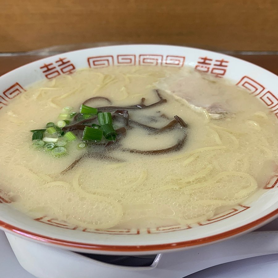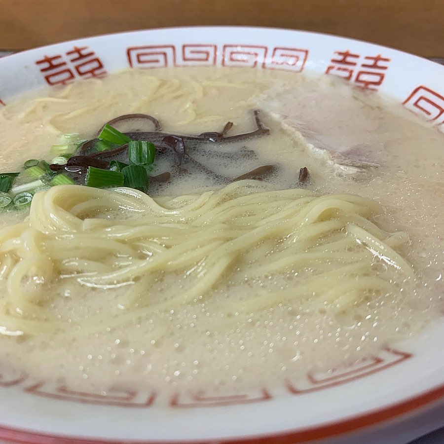 福岡のラーメン屋で2店舗しかない食べログ百名店2019の中の1つである元気一杯へ久しぶりの訪問。土日でも夕方だと待たずに入店できた。相変わらずスープは濃厚だが驚くほど滑らかで豚骨の旨味が溢れてる。麺は低加水のパツパツ麺ではなく、少しやわめの多加水麺でとろみのあるスープとよく絡む。昔から変わった気がしたが今回の麺の方が好み!