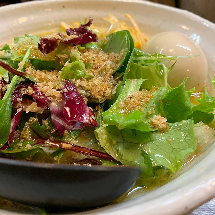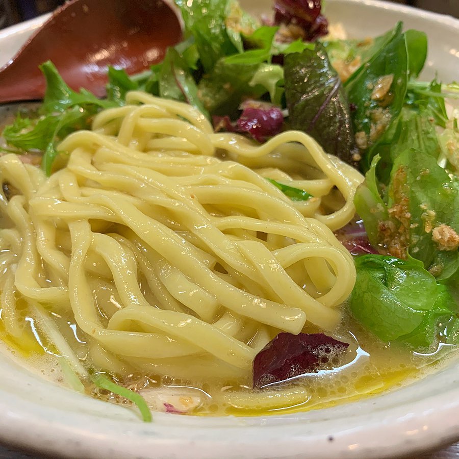 帰省後1杯目はずっと行きたかった無銘に。友人オススメの塩らーめん~トリュフオイル掛け~を注文。ポタージュ系の鶏白湯スープと塩ダレの組み合わせ。そのスープにトリュフオイルを香りをプラスしてかなり独特の風味に。濃厚なスープに小麦のもちもち平打ち太麺を合わせていて相性抜群。好みは別れそうだが、かなり満足の1杯でした。