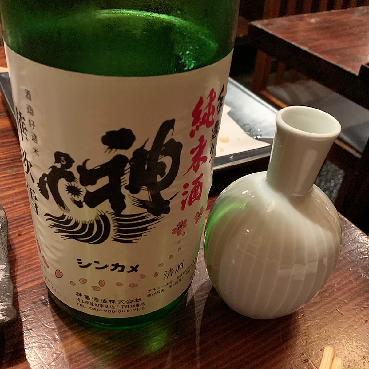 のどぐろが名物で日本酒の種類が豊富な新八さんへ!1軒目でビールを飲んでいたので最初から日本酒を注文!季節限定酒を飲んだ後に神亀酒造の純米華吹雪をぬる燗でいただきました!冷酒との飲み比べもして違いに驚き。濃厚なのどぐろの塩焼きにぴったりなら日本酒でした!