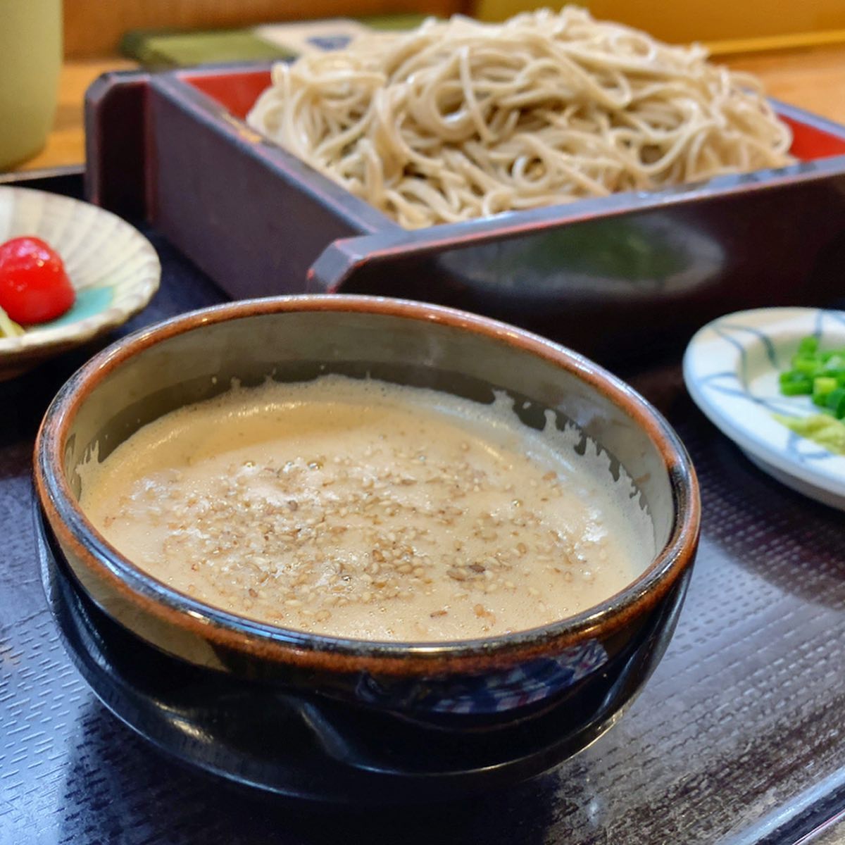 北九州空港向かう途中で気になっていた蕎麦屋さんへ訪問!クチコミを見て食べたかったごまだれせいろを注文!福井県丸岡産蕎麦粉100%の十割蕎麦で香りがとても良かった!ミニ天丼は玉ねぎの甘みとコクを感じる珍しいタレだった!