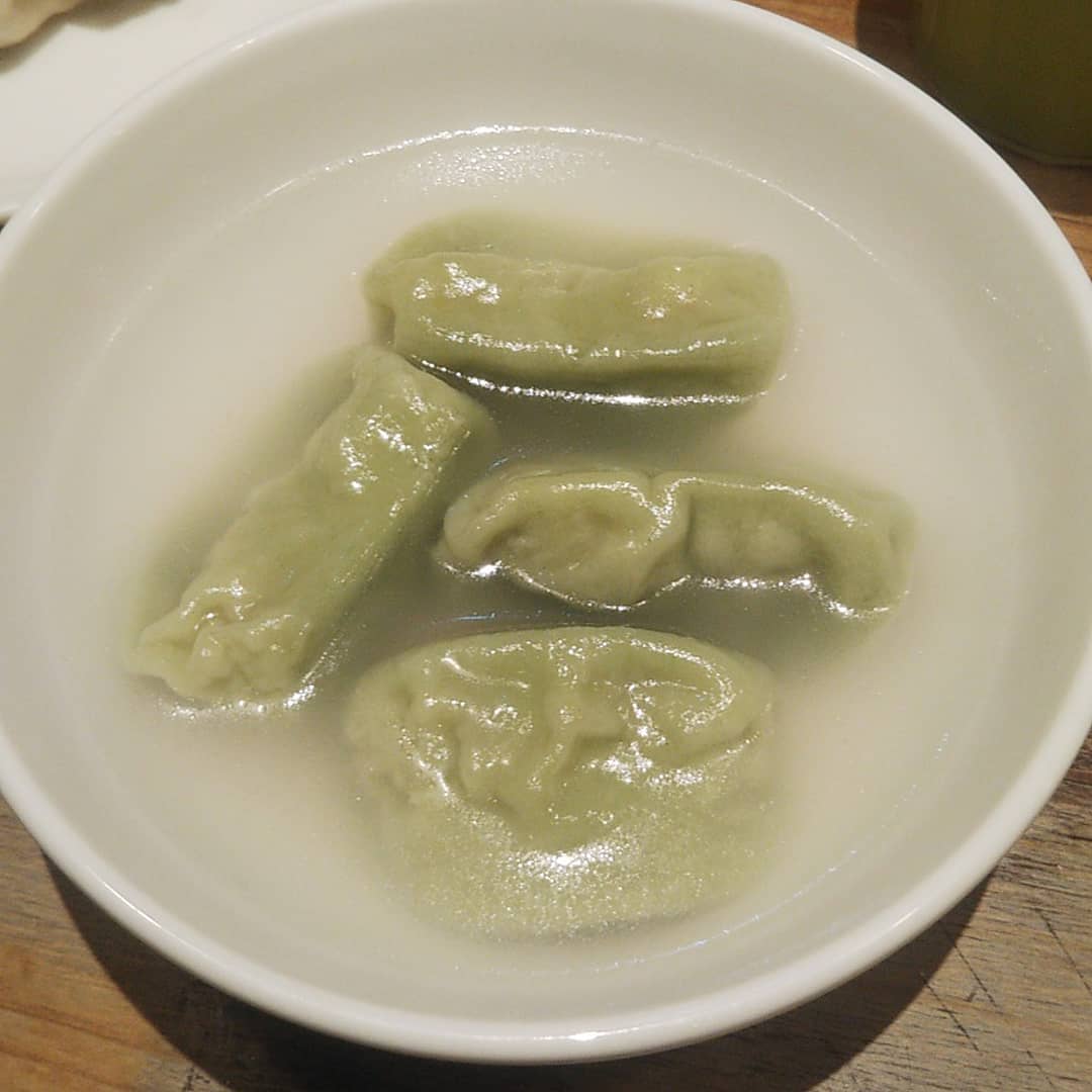 駅前の行列店。皮が厚めの焼き餃子は一味マヨとの相性抜群。水餃子はさっぱり酢醤油で。