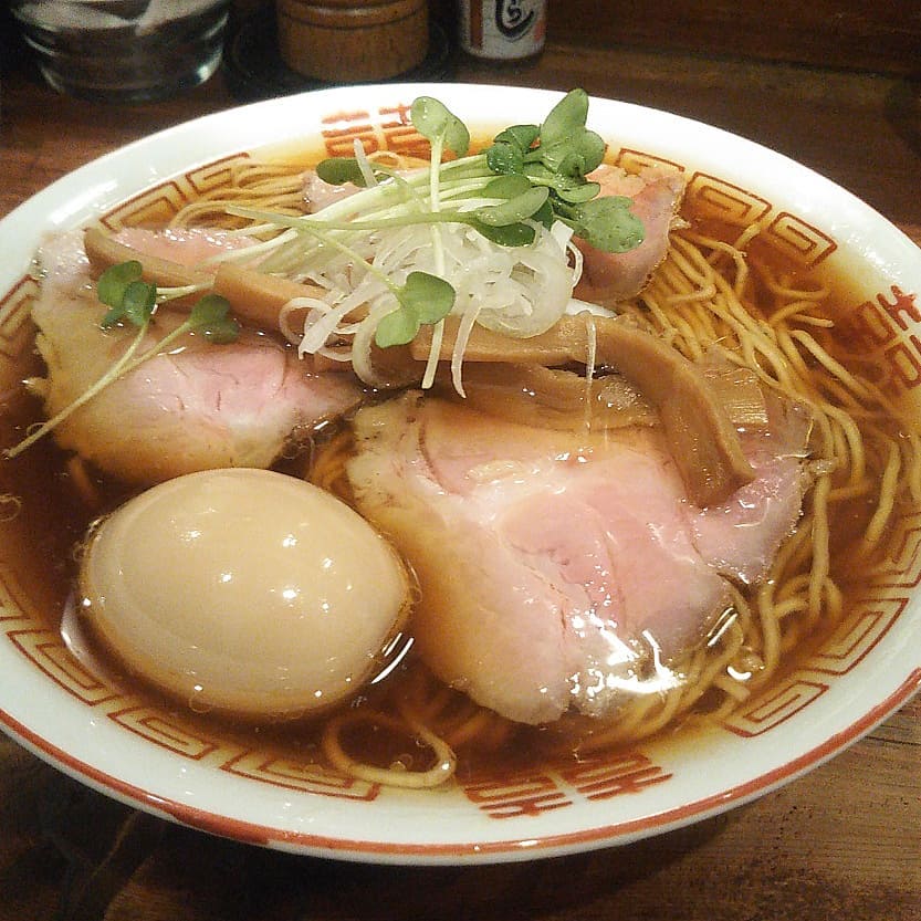 味玉中華そばを注文!鶏油の風味にキレの良い醤油がマッチして抜群の美味さ。麺は丸みを帯びた歯切れの良い麺。時間が経つと少しやわめの啜りやすい麺に変わった気がした。