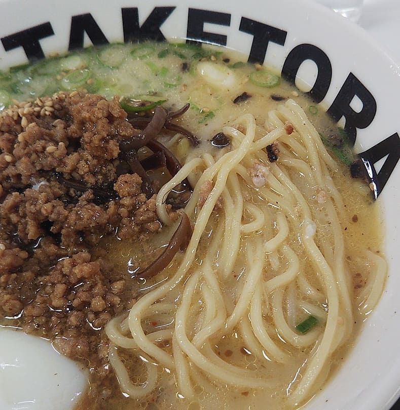鹿児島ラーメン王座決定戦でグランプリの経験がある指宿のTAKETORAさんが小倉井筒屋で食べれるということで早速訪問!指宿産鰹節後乗せの珍しいラーメン!焦がしネギがいいアクセント!あっさり食べやすいラーメンやった!