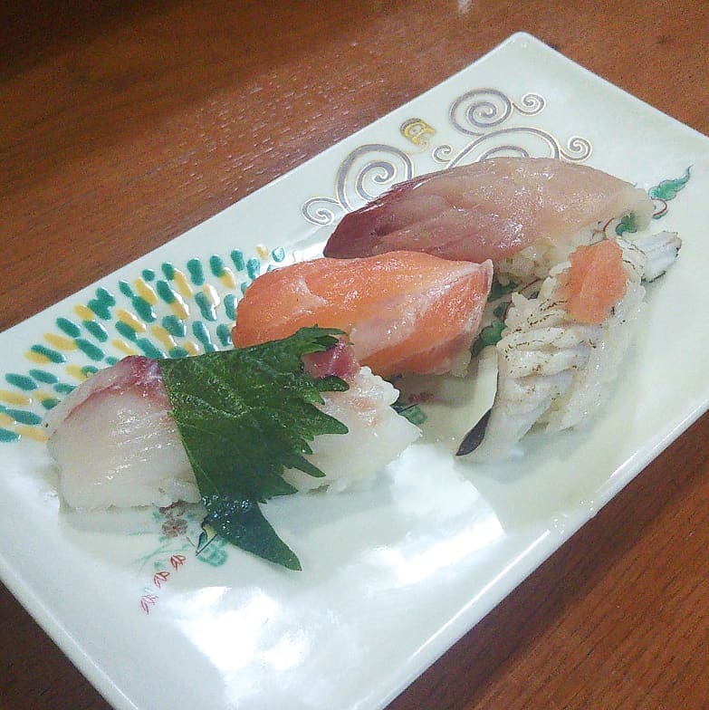 ・お寿司(ブリ、サーモン、サメ、穴子)