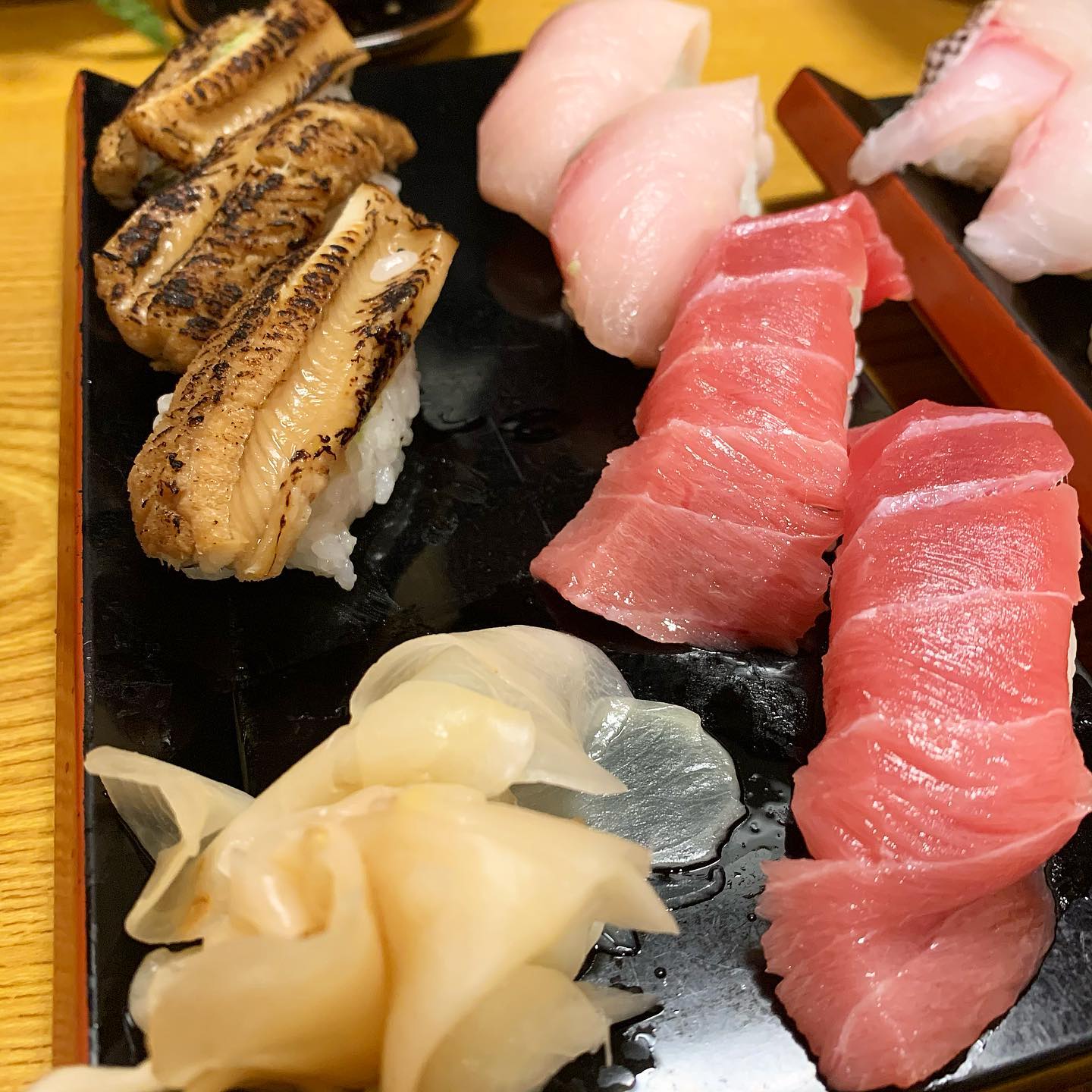 締めのお寿司は中トロも穴子もしまあじも全て1貫200円。