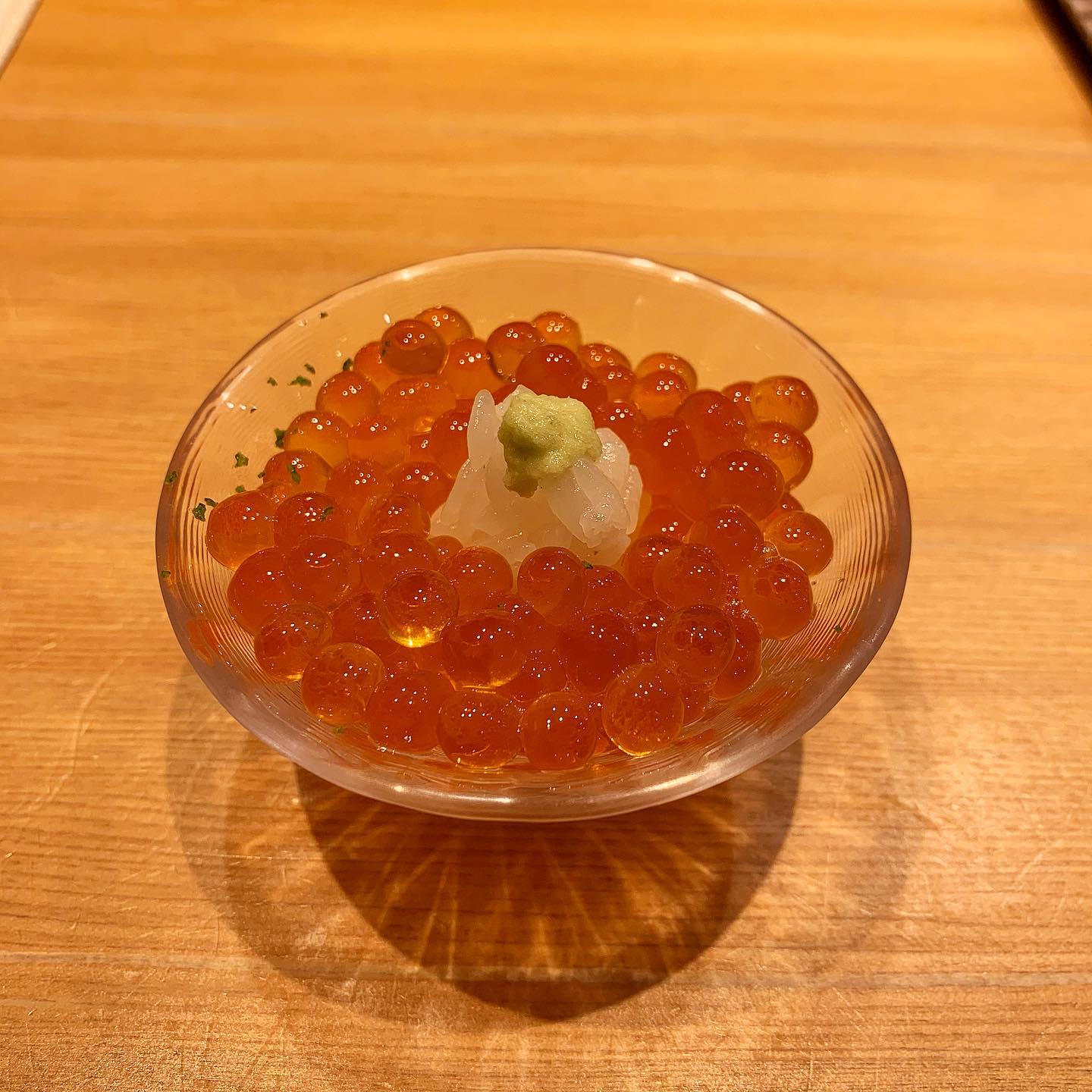 終盤にイクラや白子を出す面白いメニュー構成でとにかくボリューム満点。