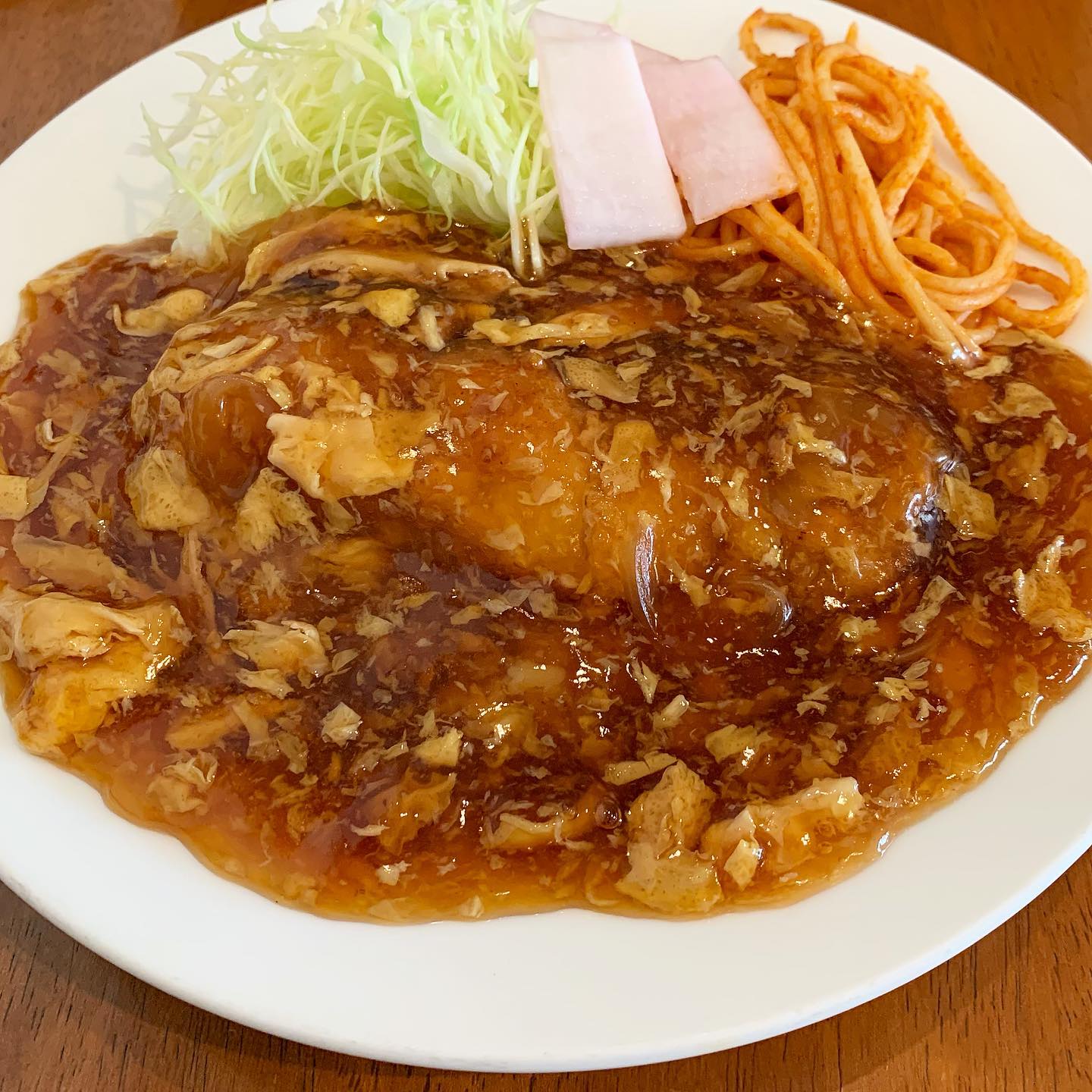皿カツ丼の餡掛けは天津飯の餡掛けのように甘めだが、カツとの相性抜群でとても好み。